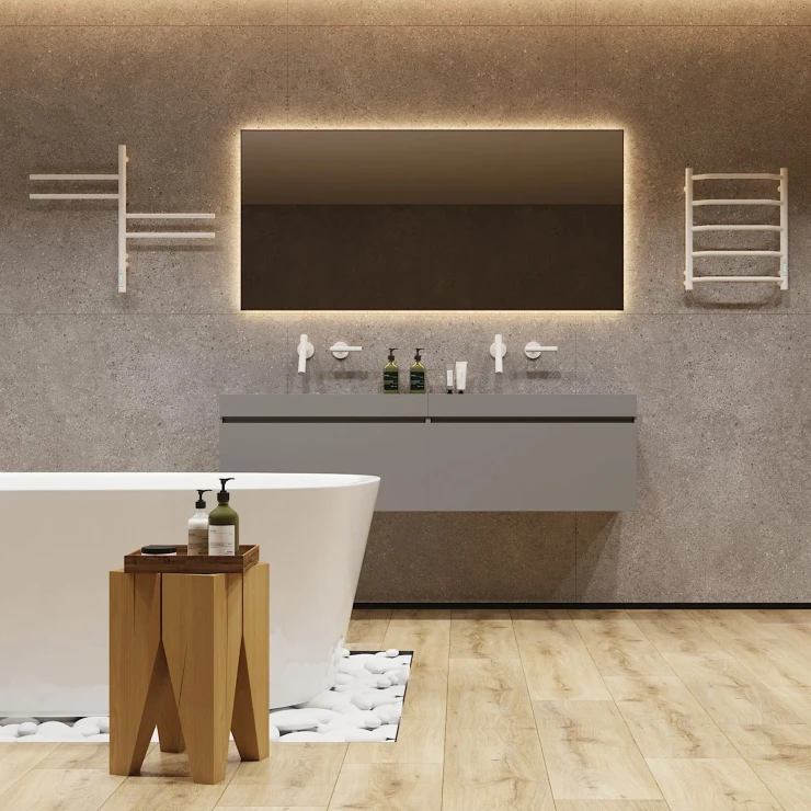 I tråd med globale trends inden for badeværelsesdesign præsenterer vi denne elektriske håndklædetørrer i mat sort udførelse. Et perfekt designvalg for kunder, der værdsætter industrielle farvetoner, minimalistisk æstetik og rene metalformer.