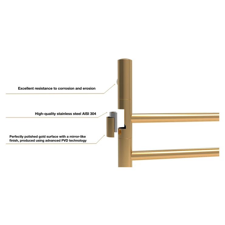 Denne elektriske håndklædetørrer er designet til høj komfort og nem anvendelse. Den kan tilsluttes hvor som helst, der er adgang til strøm. Takket være et tørt internt varmesystem kræves ingen væsker – det er bare at tilslutte og begynde at bruge. Håndklædetørreren varmes hurtigt op og når sin maksimale temperatur inden for få minutter.