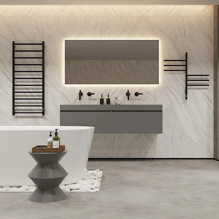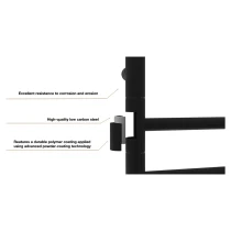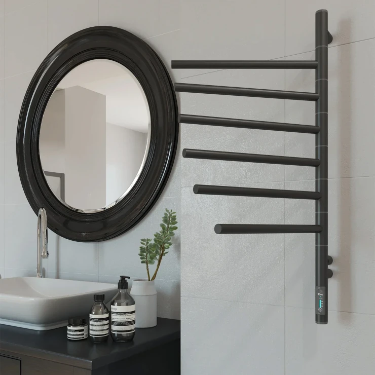 I tråd med globale trends inden for badeværelsesdesign præsenterer vi denne elektriske håndklædetørrer i mat sort udførelse. Et perfekt designvalg for kunder, der værdsætter industrielle farvetoner, minimalistisk æstetik og rene metalformer.