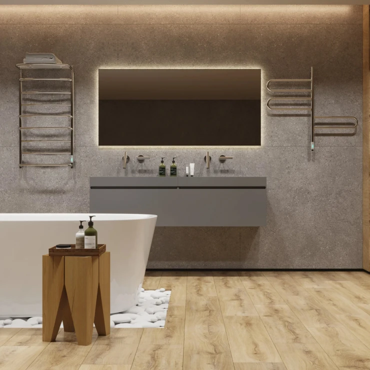 I tråd med globale trends inden for badeværelsesdesign præsenterer vi denne elektriske håndklædetørrer i mat sort udførelse. Et perfekt designvalg for kunder, der værdsætter industrielle farvetoner, minimalistisk æstetik og rene metalformer.