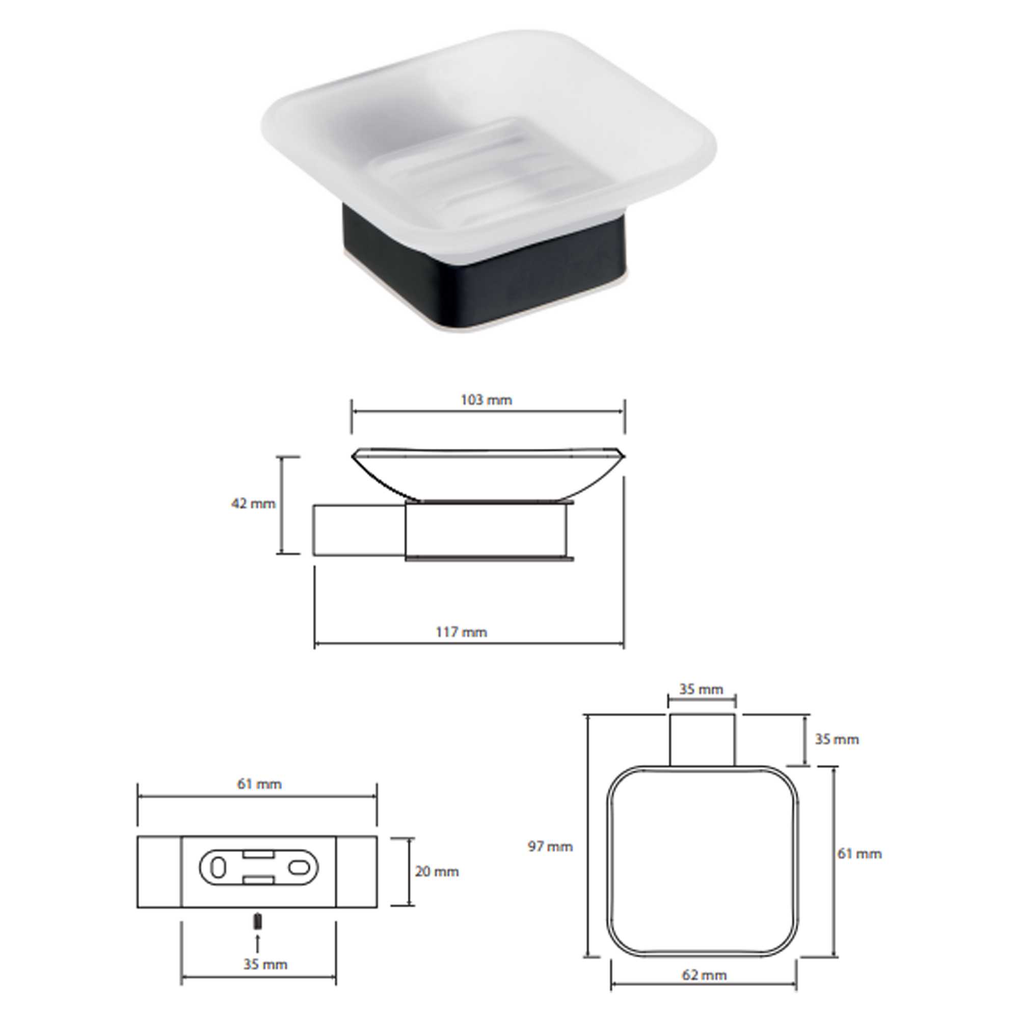 Kollektionen omfattar hyllor, handdukshållare, krokar och handtag, tvålkoppar, tvålpumpar samt hållare för toalettborste och toalettpapper. Produkterna är tillverkade i hög kvalitet och behandlade med en särskilt härdad svart lack, ofta kombinerad med detaljer i matt glas – för ett hållbart, elegant och tidlöst badrum.