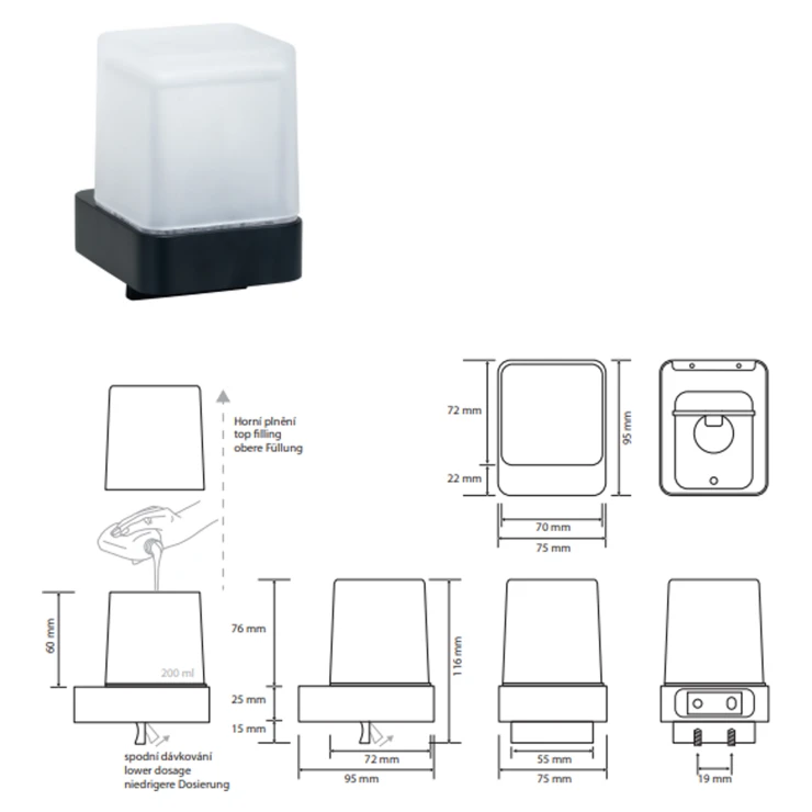 Kollektionen omfattar hyllor, handdukshållare, krokar och handtag, tvålkoppar, tvålpumpar samt hållare för toalettborste och toalettpapper. Produkterna är tillverkade i hög kvalitet och behandlade med en särskilt härdad svart lack, ofta kombinerad med detaljer i matt glas – för ett hållbart, elegant och tidlöst badrum.
