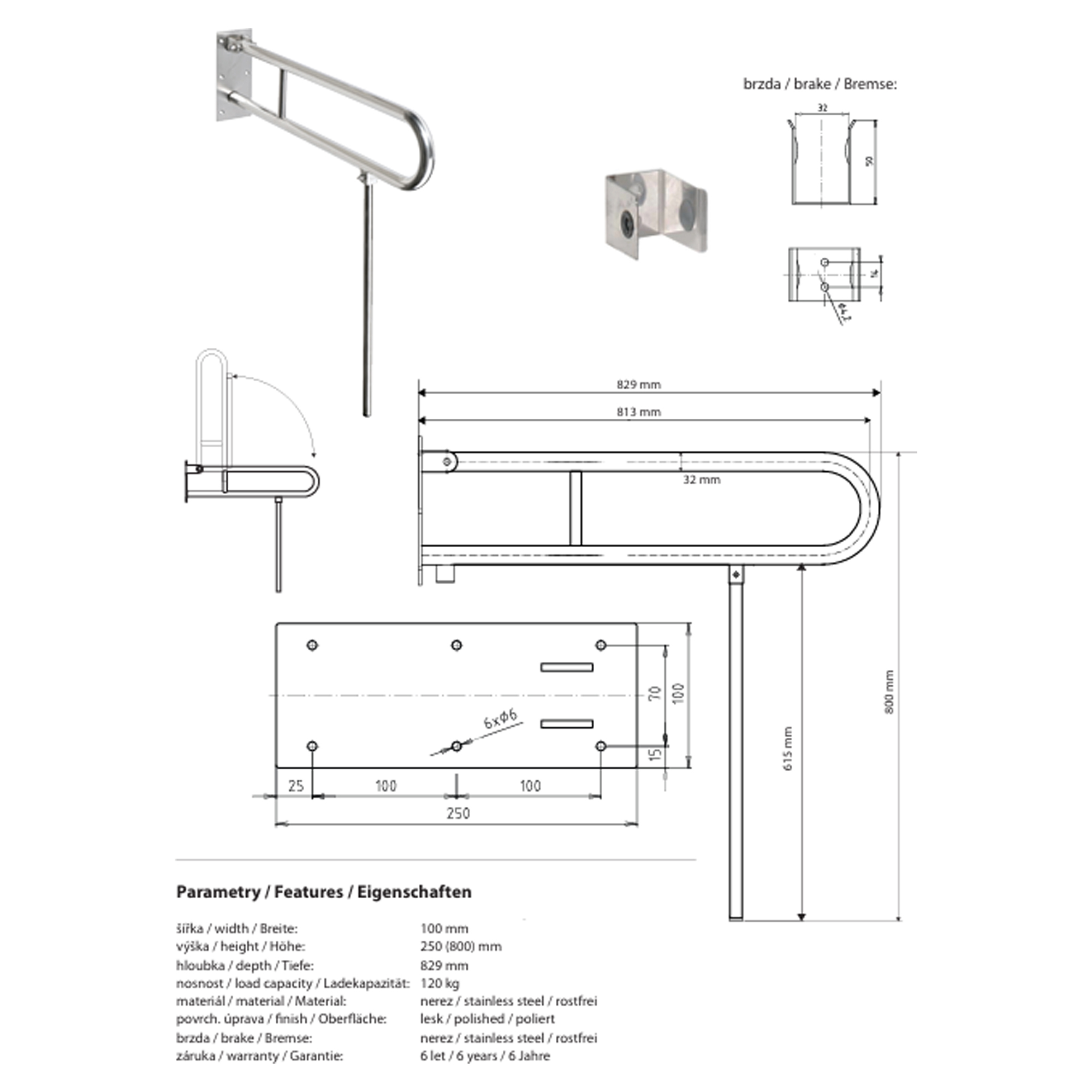 Fällbart Stödhandtag & Ben Handikappanpassad Help 81 cm Dubbel Vit Matt Utan Kåpa