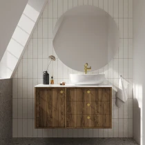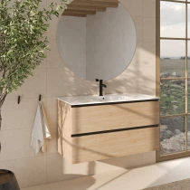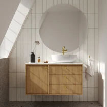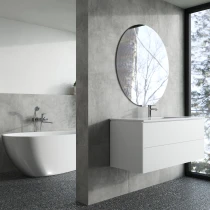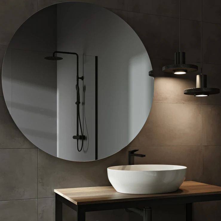 Stor rund spejl Brilla 100 cm uden belysning. Skaber rum og lys i badeværelset og giver et moderne, skandinavisk udtryk.