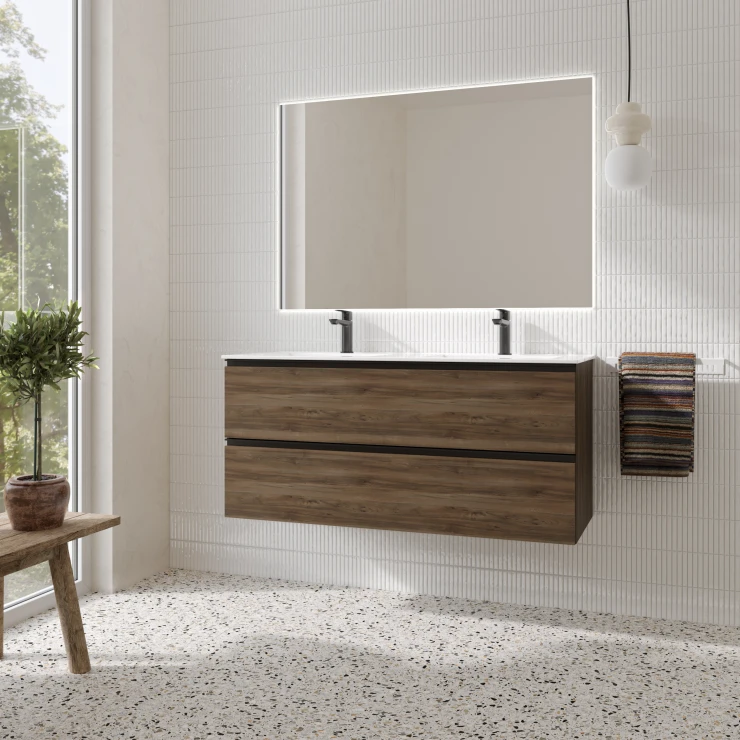 Ekstra bred Brilla spejl 120x80 cm med LED-belysning (4000K). Perfekt til dobbeltvask. Vendbar montering og ekstern afbryder giver maksimal funktionalitet og nem anvendelse.