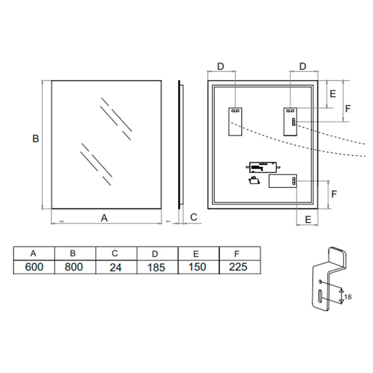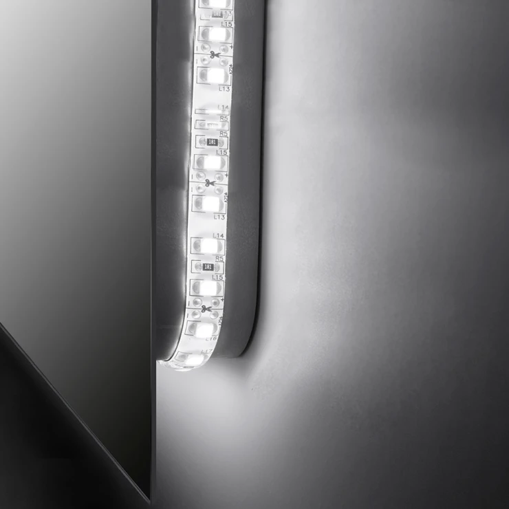 Moderne badeværelsesspejl Brilla 60x80 cm med integreret LED-belysning (4000K), der giver et neutralt og behageligt lys. Vendbar montering muliggør både vertikal og horisontal installation. Styres nemt via ekstern afbryder.