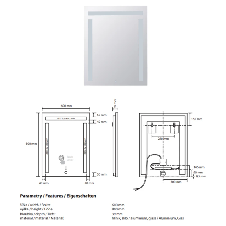Med energisnål LED-belysning, beröringssensorer för enkel användning och EU-tillverkad kvalitet, är Ironelle-spegeln ett praktiskt och elegant val för både privata hem och offentliga miljöer där god belysning och funktionella detaljer är viktiga.