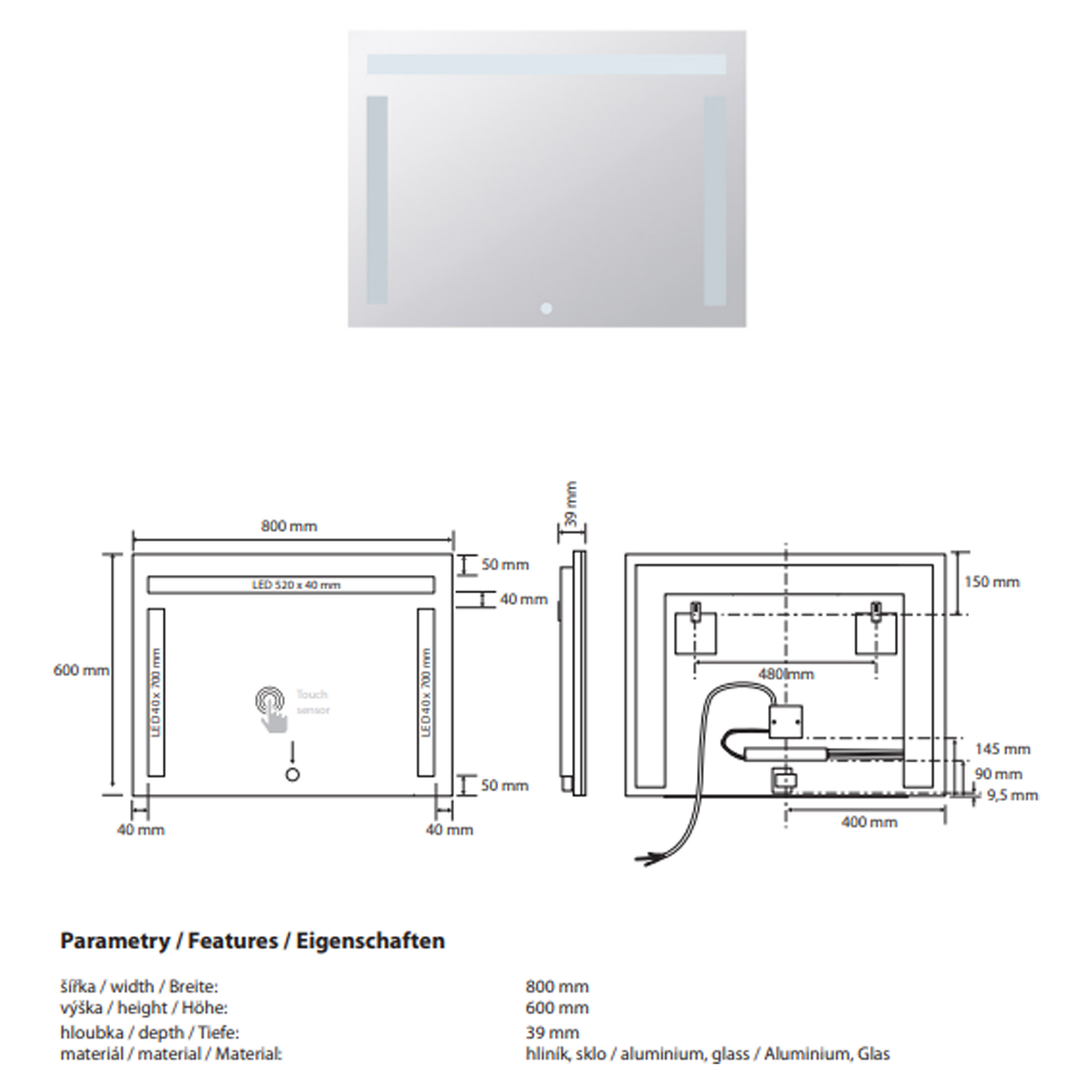 Med energisnål LED-belysning, beröringssensorer för enkel användning och EU-tillverkad kvalitet, är Ironelle-spegeln ett praktiskt och elegant val för både privata hem och offentliga miljöer där god belysning och funktionella detaljer är viktiga.