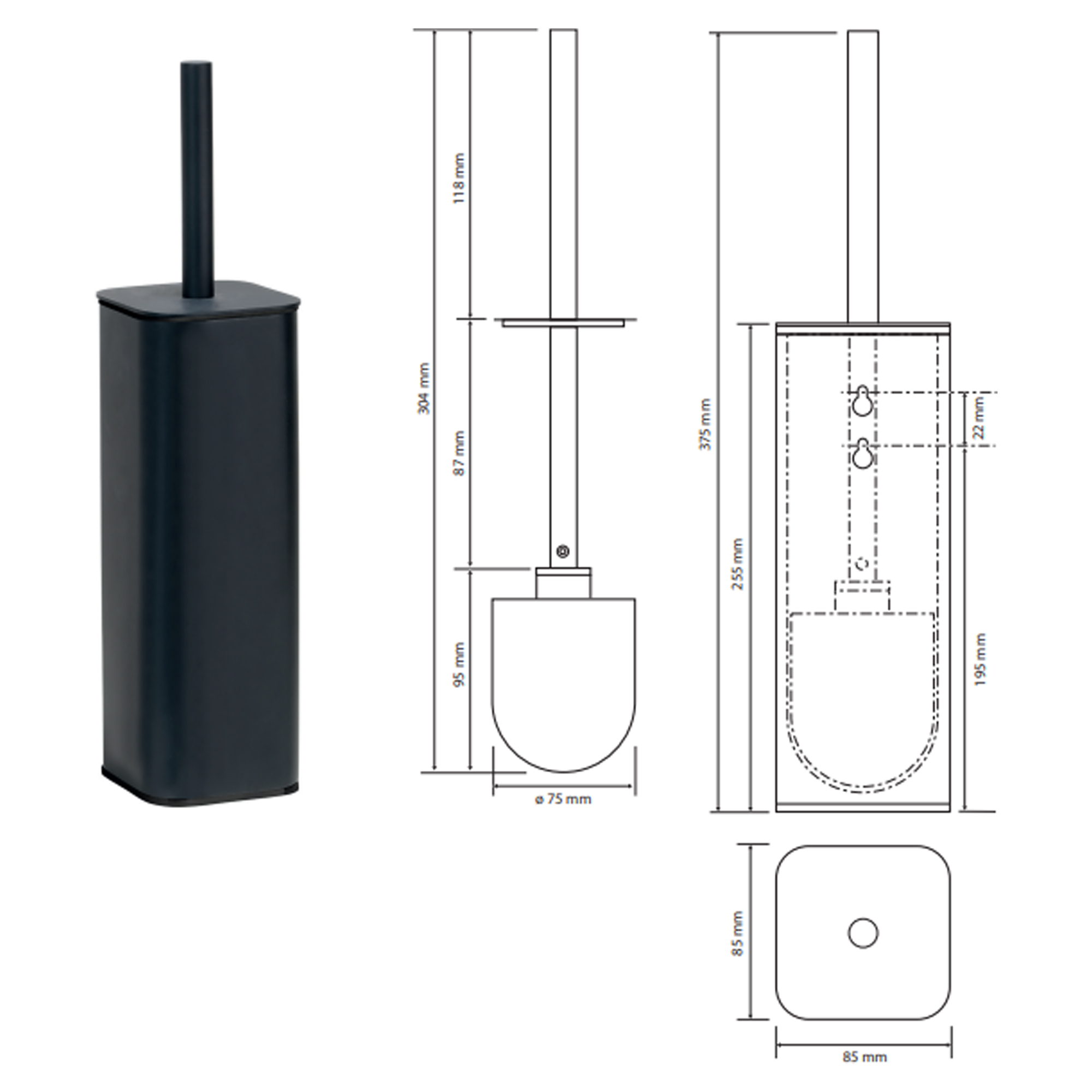 Kollektionen omfattar hyllor, handdukshållare, krokar och handtag, tvålkoppar, tvålpumpar samt hållare för toalettborste och toalettpapper. Produkterna är tillverkade i hög kvalitet och behandlade med en särskilt härdad svart lack, ofta kombinerad med detaljer i matt glas – för ett hållbart, elegant och tidlöst badrum.