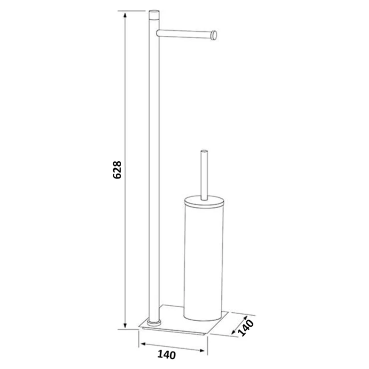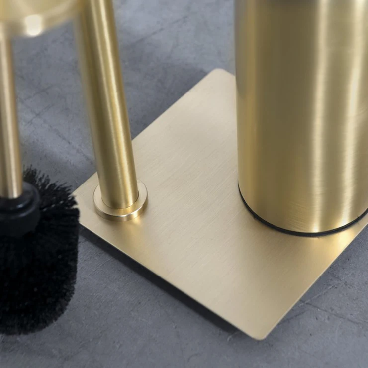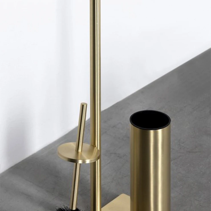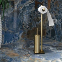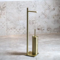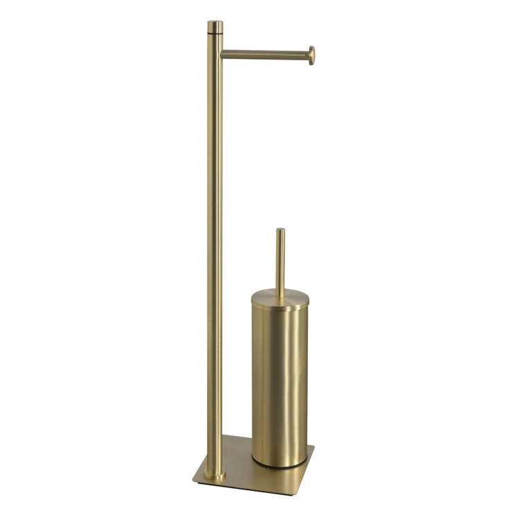 Fristående hållare för toalettpapper och borste – elegant och funktionell lösning utan behov av montering.