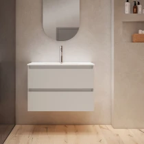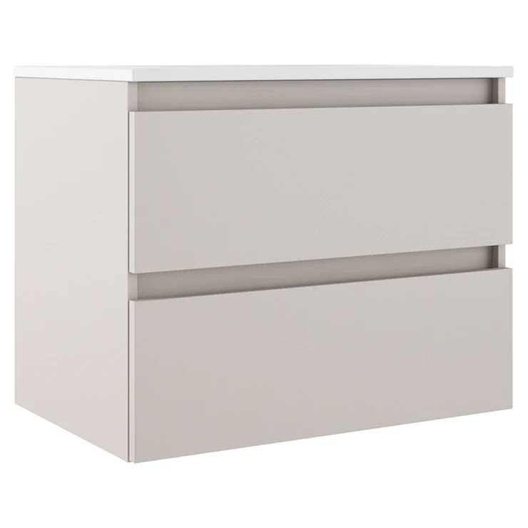Tvättställsskåp Blisse Beige Matt 70 cm med Två Lådor & Handfat Vit Blank