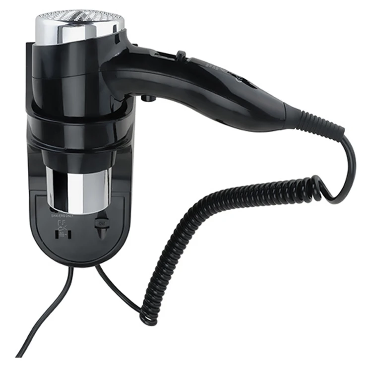 Den svarta hårtorken på 1600 W med hållare i hårdplast har en spiralkabel samt 3 temperaturinställningar och 2 hastighetsinställningar. Hårtorken är utrustad med ett integrerat rakuttag.
