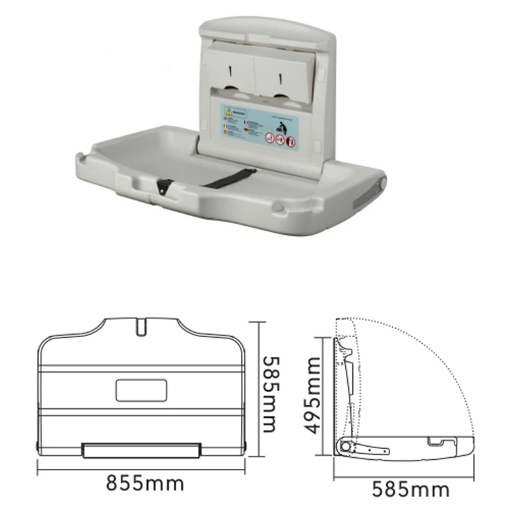 Den fällbara designen optimerar utrymmet och gör att skötbordet kan stängas när det inte används.