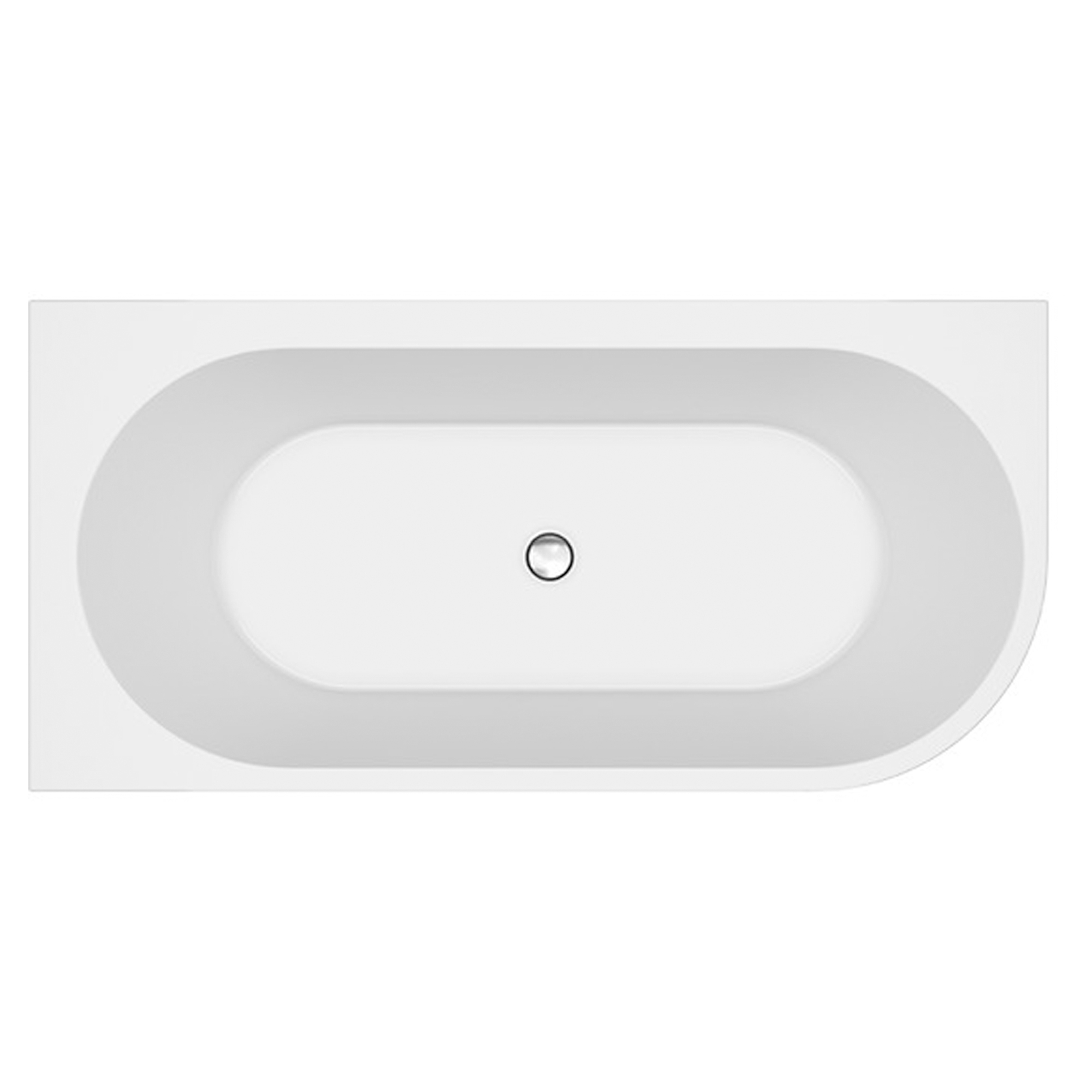Detta fristående väggnära hörnbadkar är en lösning för dig som vill kombinera den monolitiska elegansen hos ett fristående badkar med praktisk funktionalitet i ett smart planerat badrum. Konstruktionen gör det möjligt att använda både väggmonterad och kantsmonterad badkarsblandare, eftersom det finns möjlighet att borra hål i badkarskanten. Produkten är dessutom utrustad med en bekväm avlastningshylla intill väggen – perfekt för badtillbehör och hygienartiklar.