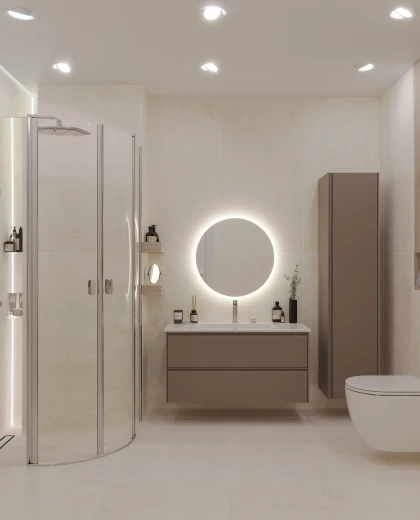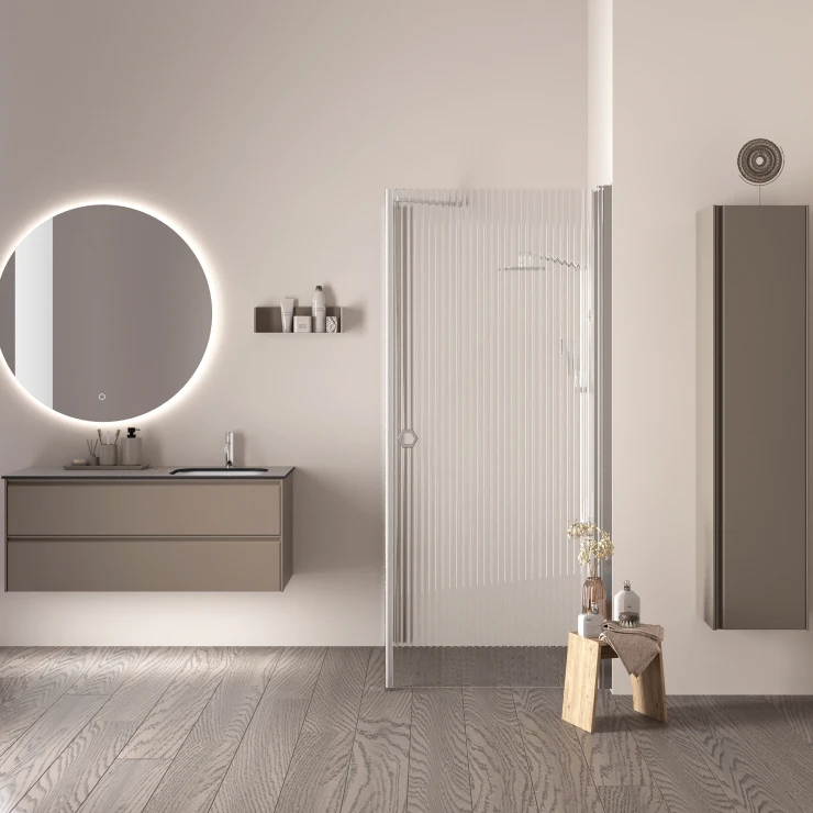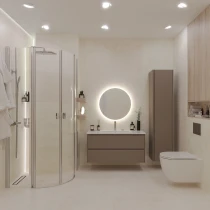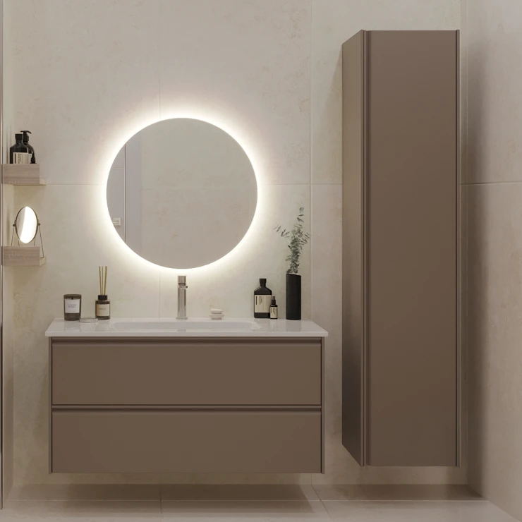Tone-møbelserien tilbyder moderne subtilitet og universelt design, der nemt forvandler dit badeværelse til en oase af ro. Med sine tynde, symmetriske linjer og ergonomiske håndtag appellerer den til minimalister, mens dens tidløse matte farver – hvid, grå og kakaobrun – sikrer et stilfuldt og holdbart valg for ethvert moderne badeværelse.