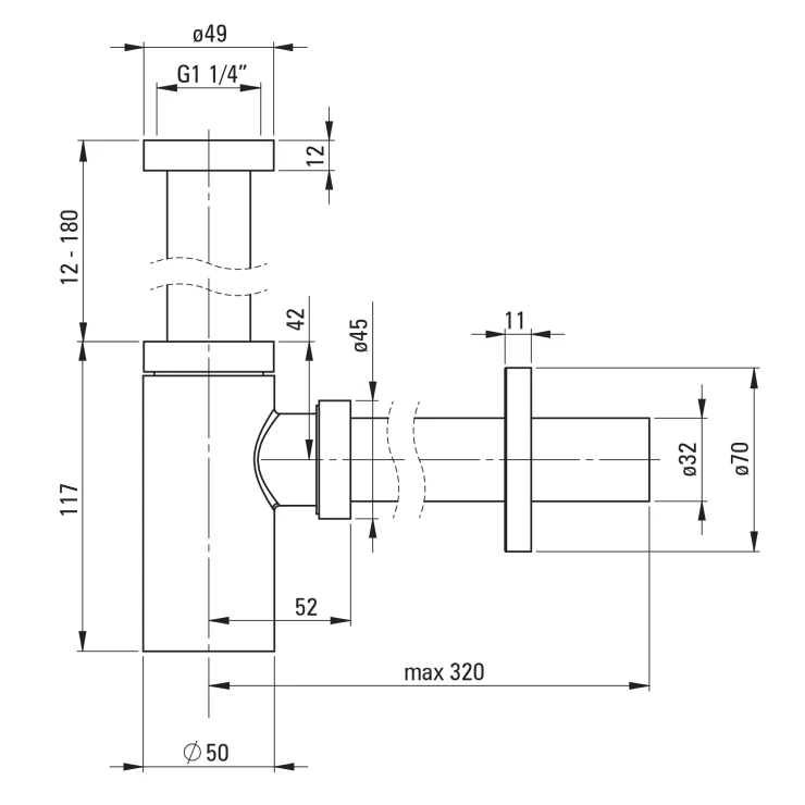 Vattenlås passar alla tillgängliga tvättställ med en standardavloppsdiameter på 1 1/4"