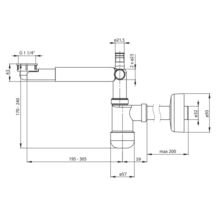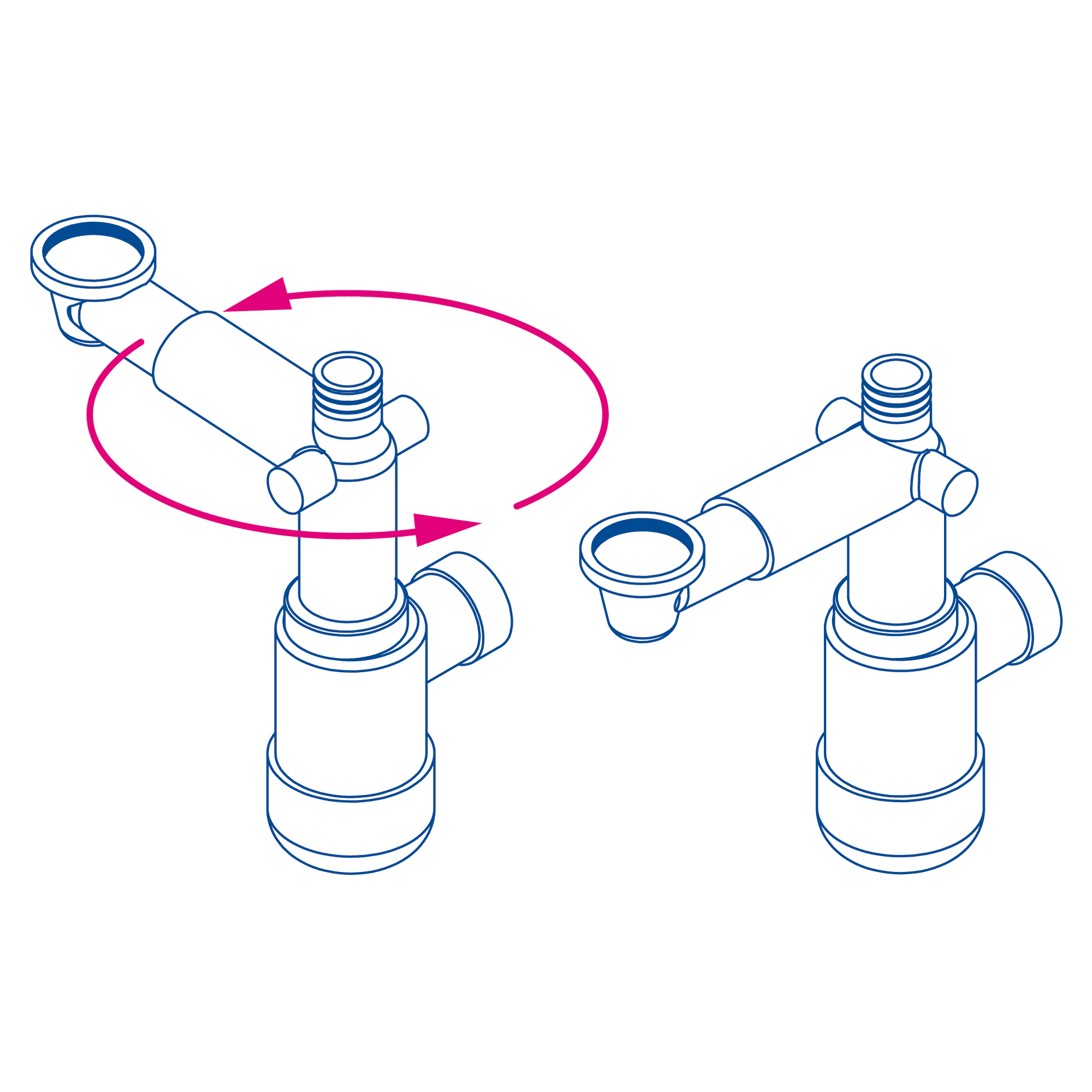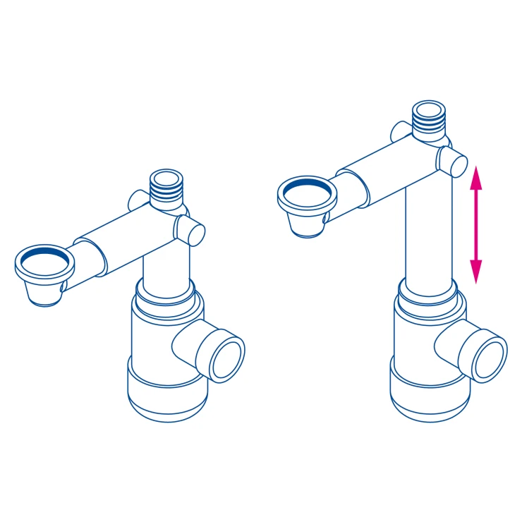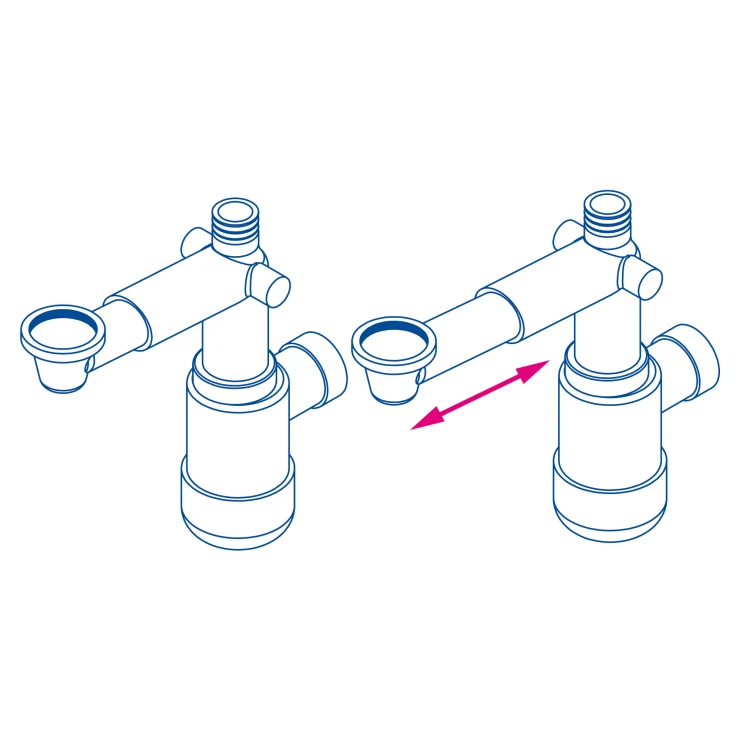 Sifon Space-saver lux är en flaskmodell som rengörs från undersidan. Sifonen har en teleskopisk konstruktion som sparar utrymme i skåpet. På så sätt får du extra plats för soptunnor för källsortering eller förvaringsutrymme för kosmetika.