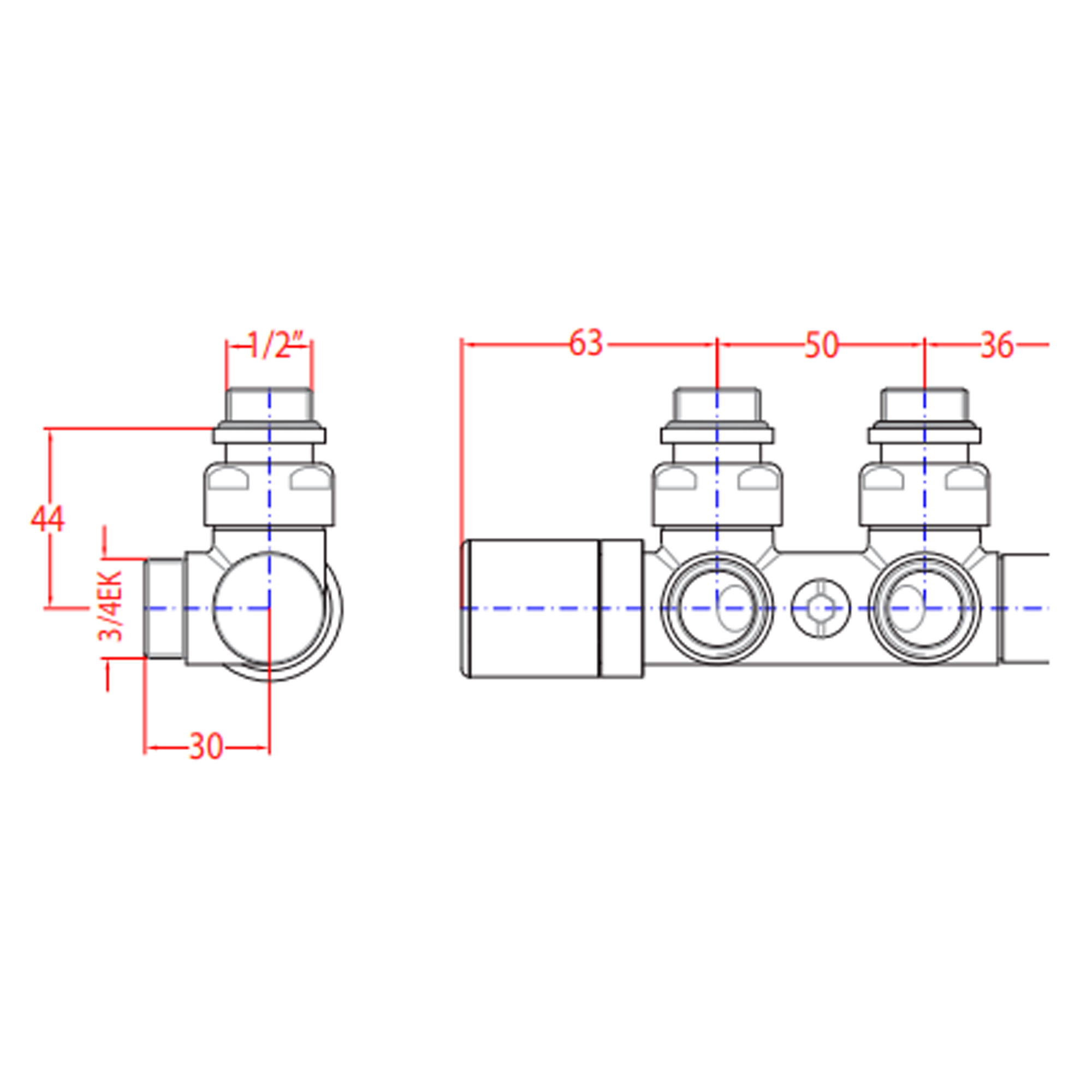 Ventil med Omskifter, Termostatisk Funktion + Afspærringsventil Krom
