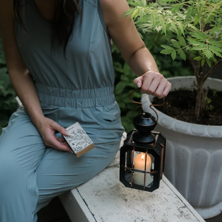 • Lys upp trädgården, terrassen eller inomhusmiljön med denna vackra ljuslykta i vintageinspirerad design. Box Candle Lantern kombinerar klassisk estetik med modern funktionalitet och skapar en varm och inbjudande atmosfär oavsett plats. Den robusta konstruktionen i stål och glas gör lyktan hållbar och långlivad, medan den svartbronsfärgade finishen och de kopparfärgade detaljerna tillför en tidlös elegans.