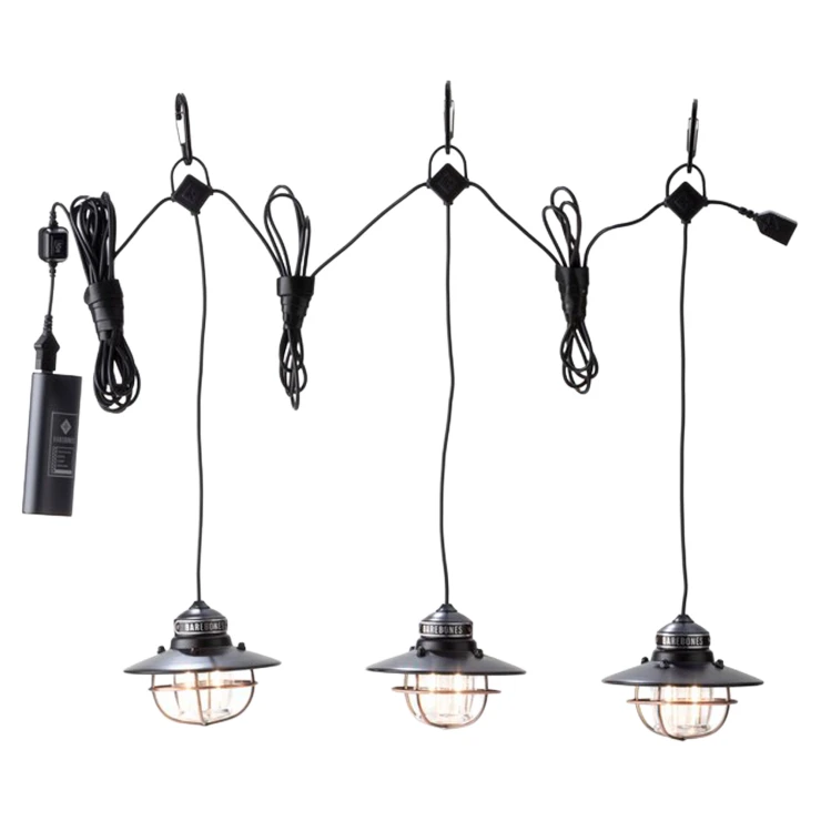 • Barebones Edison String Lights – skapa stämning och belysning oavsett om du är ute i naturen eller i stan. Tre LED-lampor i klassisk Edison-stil kopplas samman med en gemensam kabel, vilket gör dem enkla att hänga upp och forma efter din utomhusmiljö. Perfekt för terrassen, trädgården, balkongen eller campingplatsen.