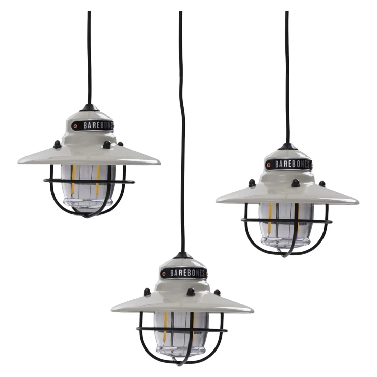 • Barebones Edison String Lights – skapa stämning och belysning oavsett om du är ute i naturen eller i stan. Tre LED-lampor i klassisk Edison-stil kopplas samman med en gemensam kabel, vilket gör dem enkla att hänga upp och forma efter din utomhusmiljö. Perfekt för terrassen, trädgården, balkongen eller campingplatsen.