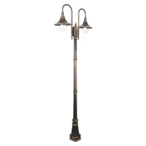 • Kollektionen av trädgårdslampor Koro är en kombination av klassisk stil och dekorativ form som passar utmärkt i utomhusmiljöer – från privata trädgårdar till eleganta gångar och terrasser. De karakteristiska armaturernas siluett hänvisar till retrostilen och tillför en känsla av tradition och hemtrevnad till omgivningen. Serien omfattar vägglampor, hängande lampor och höga golvlampor, vilket gör det möjligt att skapa en enhetlig och estetiskt tilltalande belysningskomposition över hela fastigheten. Koro-modellerna finns i två färgversioner – djup svart och elegant borstad guld – vilket gör dem lätta att matcha med byggnadens arkitektur och trädgårdens karaktär.