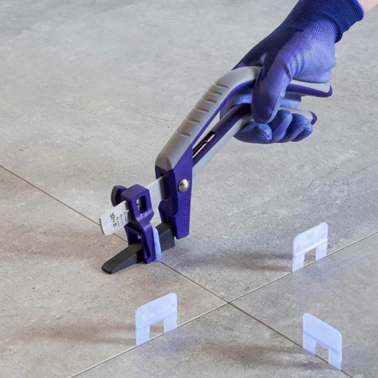 Den ergonomiske tang til niveausystem minimerer træthed og skader forårsaget af muskeloveranstrengelse ved fliselægning og gulvlægning, og muliggør perfekte resultater med mindre tid og anstrengelse. Den forhindrer problemer, der opstår ved bøjning af håndleddene ved at justere rotations- og trykakslerne i linje med armens akser.