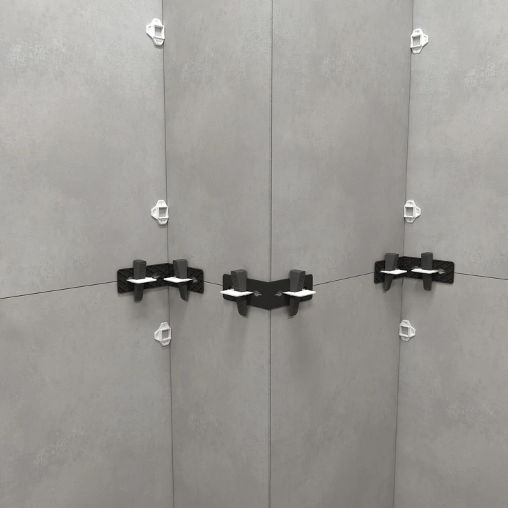 Hjørne niveaukonsollen gør fliselægningen enklere og mere præcis, når det gælder 90º-vinklen i hjørner, fremspring, samlinger osv. med et forbedret slutresultat. Du kan overlappe to stykker, hvis du har to hjørner tæt på hinanden.