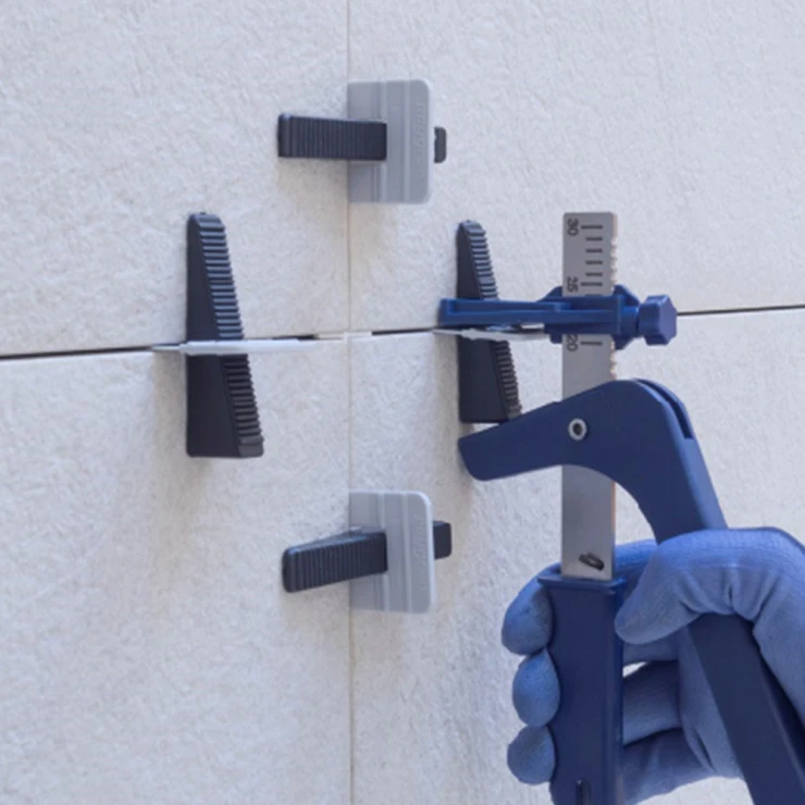 Niveausystem PRO Startpakke til klinker. Sættet indeholder 100 niveaubøjler til 1 mm fugebredde, 100 kiler og en keramisk tang. En enkel måde at nivellere klinker ved installation. I kan supplere ved at købe ekstra bøjler samt ekstra kiler. Bøjlerne er ikke genanvendelige, mens kilerne kan genanvendes, når mørtlen er tørret.