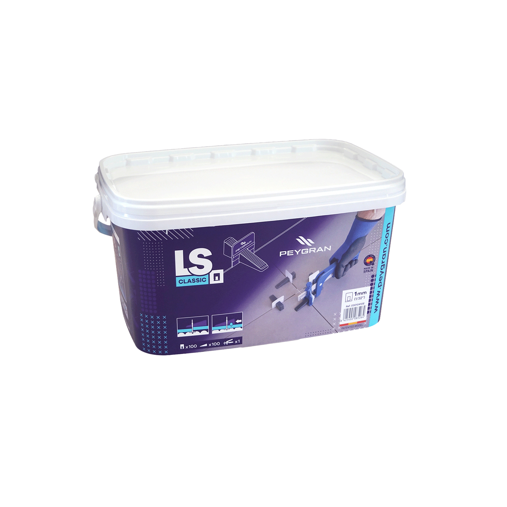 Emballagen består af 100 bøjler til 3 mm fugebredde, 100 kiler samt en justerbar tang.