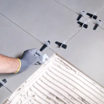 Klemmerne har sideskæringer (patenterede), der gør, at vi nemt kan fjerne dem, blot med et slag på siden i fugeretningen, når arbejdet er færdigt (mørtel).
