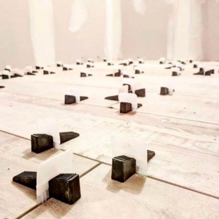 Monter først bøjlen i henhold til instruktionerne, derefter bruger man kilen til at få niveau reguleret fliserne ved at føre kilen igennem bøjlen. Bøjlerne er lavet af højkvalitetsmateriale, hvilket gør, at tværhovederne er meget modstandsdygtige over for trækkræfter.