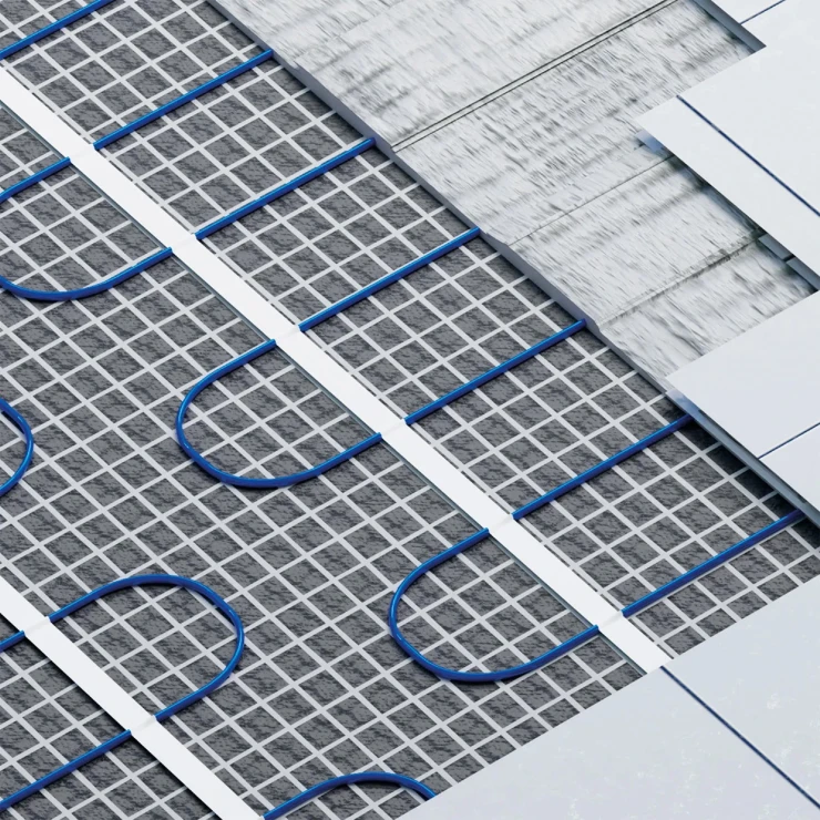 Milos elektrisk golvvärmematta för keramiska golv (150 W/m²). Kompatibel med hårda, keramiska och porslinsgolv. Idealisk för låg energiförbrukning med jämn värmespridning och hög komfort.