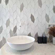 Vänligen notera: Även om plattorna är lämpliga för badrum, rekommenderas de inte för installation i duschutrymmen. Kontinuerlig exponering för vatten, schampo och tvål kan skada ytan och orsaka permanenta fläckar på grund av materialets höga porositet.