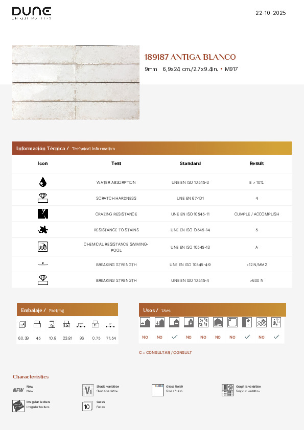 Dune Vægflise Antiga Tom Blank 7x24 cm