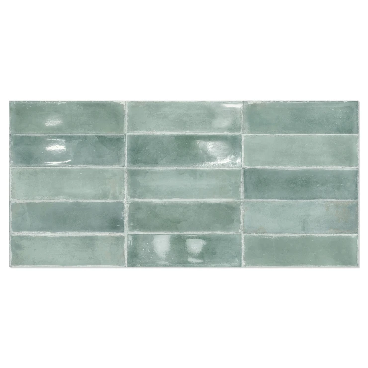 - 6,9×24 cm vægfliser med intens blank glans og let slidte kanter, der tilfører dybde og håndlavet karakter;