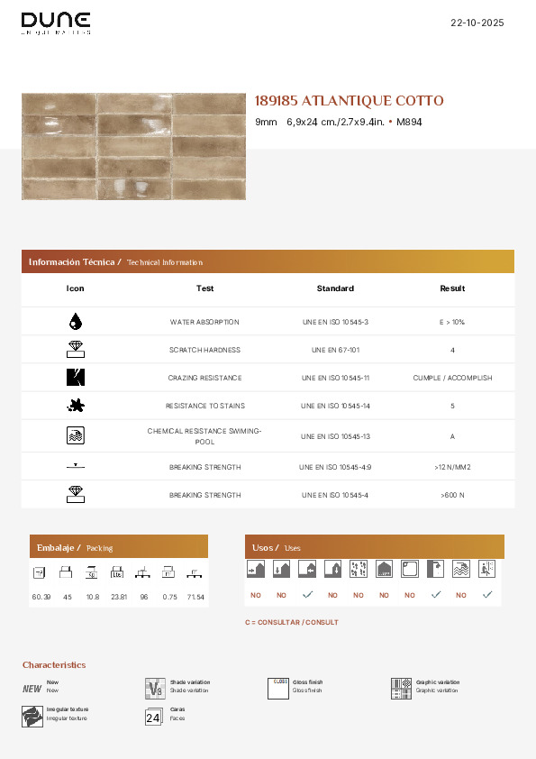 Dune Kakel Atlantique Cotto Blank 7x24 cm från serie Atlantique. Atlantique(KLD1253) Kakel 6x25 cm kan endast användas till vägg. Karaktären för Atlantique är blank brun yta med en rund kant samt med enfärgad textur. Det nominella måttet och annan specifikation på denna platta ni kan hitta i tabell beskrivning. Denna platta har en enfärgad textur. Sök efter kollektions namnet (Atlantique) för att se om det ingår i en serie som kanske erbjuder fler storlekar, kan även finnas andra färger.