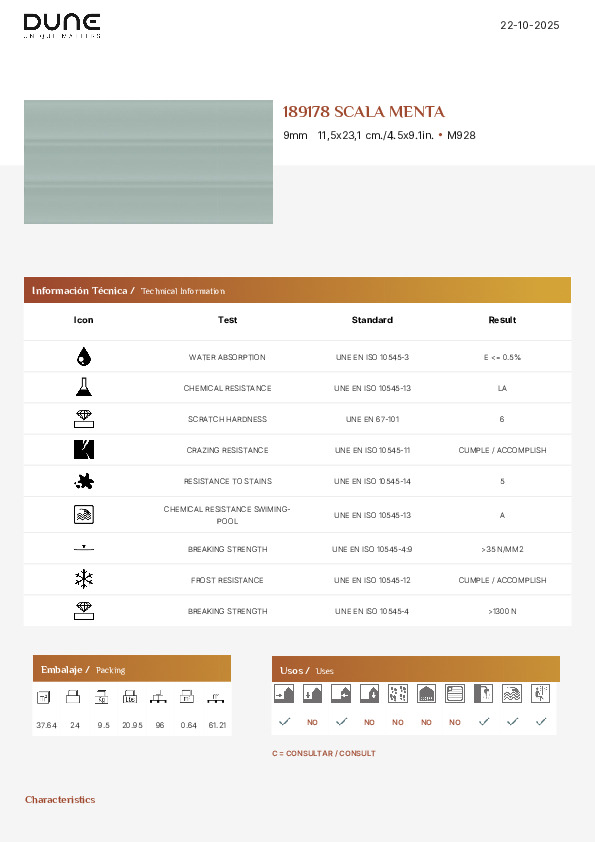 Dune Kakel Milano Menta Matt Relief 11.5x23 cm från serie Milano Dune. Milano Dune(KLD1239) Kakel 10x20 cm kan endast användas till vägg. Karaktären för Milano Dune är relief grön yta med en rund kant samt med enfärgad textur. Det nominella måttet och annan specifikation på denna platta ni kan hitta i tabell beskrivning. Denna platta har en enfärgad textur. Sök efter kollektions namnet (Milano Dune) för att se om det ingår i en serie som kanske erbjuder fler storlekar, kan även finnas andra färger.