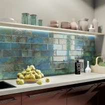 Fliserne er fremstillet i højkvalitets keramik og er udelukkende beregnet til vægbrug. Formatet 10x30 cm kombineret med en elegant blank overflade fremhæver lysets refleksion og intensiverer farverne, hvilket giver et håndlavet og raffineret udtryk.