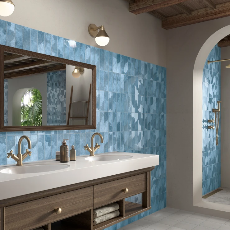 Det slanke format egner sig perfekt til både lodret og vandret montering og gør Korfu ideel til køkkener, badeværelser, stænkpaneler og feature-vægge. Den nuancerede farvepalette tilfører bevægelse og karakter uden at dominere rummet.
