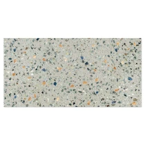 Matchende mosaikker og dekorflisen Glow Concrete tilfører yderligere designmuligheder. Den betoninspirerede overflade med sin diskrete struktur skaber en elegant kontrast til terrazzoeffekten og udvider kollektionens kreative potentiale.