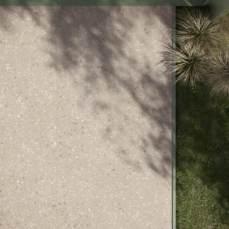 Carve 3D-teknologi forstærker realismen i terrazzoeffekten ved at give hvert fragment præcis definition og en taktil kvalitet, som både kan ses og mærkes. Denne detaljegrad skaber en overflade med dybde og variation, hvor hver flise bidrager til en dynamisk, men sammenhængende helhed.