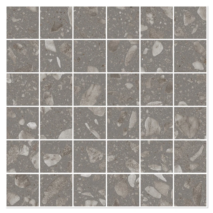 Carve 3D-teknologi forstærker realismen i terrazzoeffekten ved at give hvert fragment præcis definition og en taktil kvalitet, som både kan ses og mærkes. Denne detaljegrad skaber en overflade med dybde og variation, hvor hver flise bidrager til en dynamisk, men sammenhængende helhed.