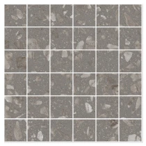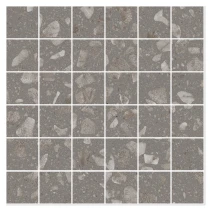 Matchende mosaikker og dekorflisen Glow Concrete tilfører yderligere designmuligheder. Den betoninspirerede overflade med sin diskrete struktur skaber en elegant kontrast til terrazzoeffekten og udvider kollektionens kreative potentiale.