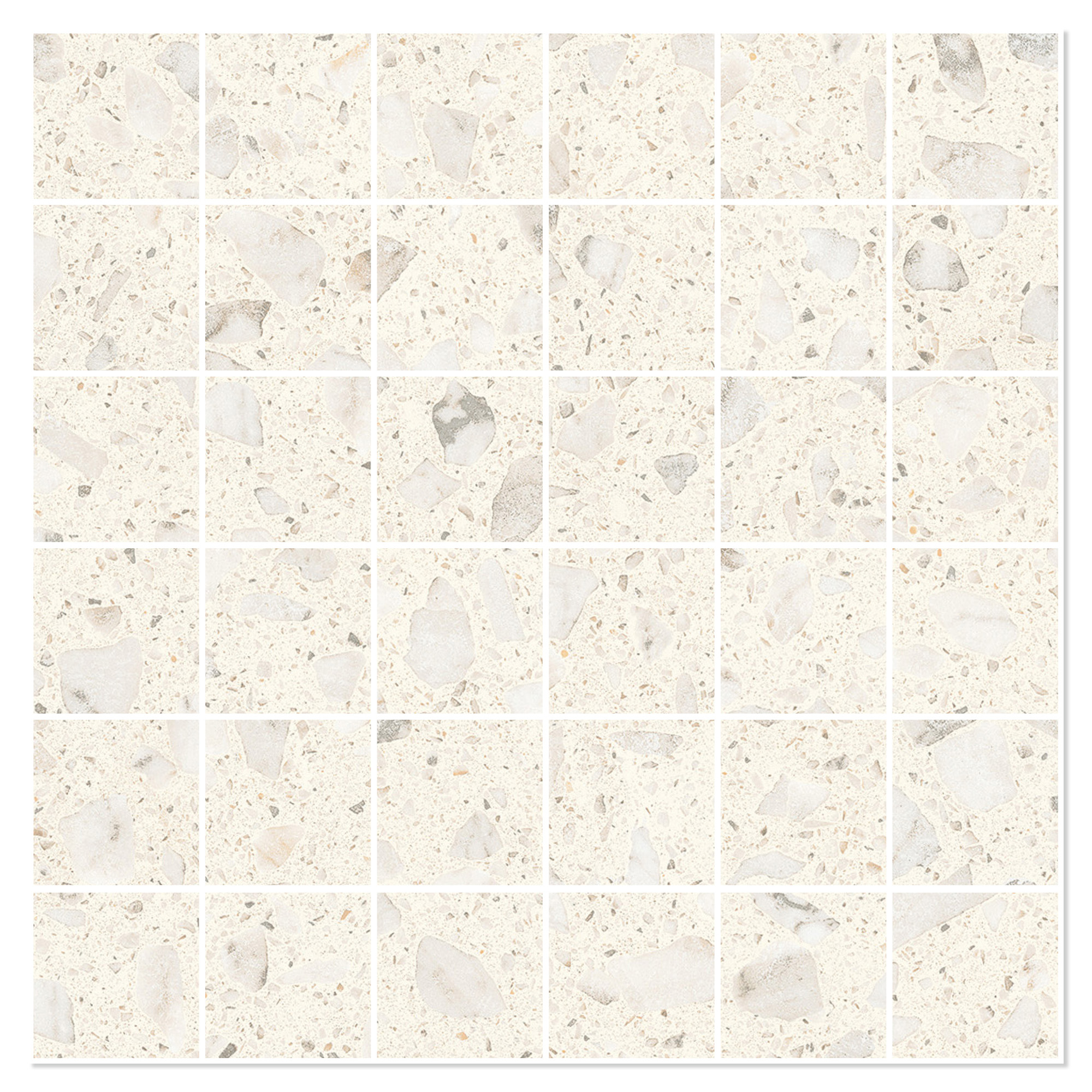 Carve 3D-teknologi forstærker realismen i terrazzoeffekten ved at give hvert fragment præcis definition og en taktil kvalitet, som både kan ses og mærkes. Denne detaljegrad skaber en overflade med dybde og variation, hvor hver flise bidrager til en dynamisk, men sammenhængende helhed.