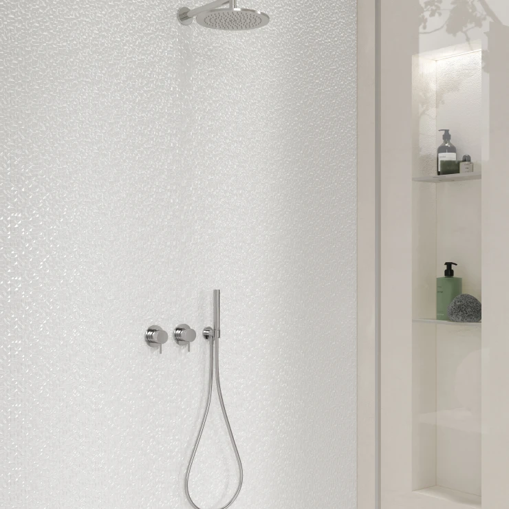 Mosaikken er beregnet til væg og egner sig særligt godt i badeværelser, køkkener og andre indendørsmiljøer, hvor man ønsker at skabe en dekorativ og lysreflekterende overflade. Den fungerer fremragende som stænkbeskyttelse, fondvæg eller som en stilren detalje i både moderne og klassiske interiører.