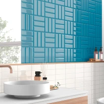 Den blanka glasyren förstärker färgernas intensitet och ljusreflektion, vilket gör Modul särskilt lämpad för kök, badrum och dekorativa fondväggar där struktur, precision och genomtänkt detaljering står i fokus.