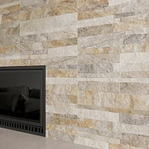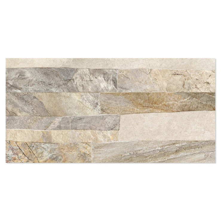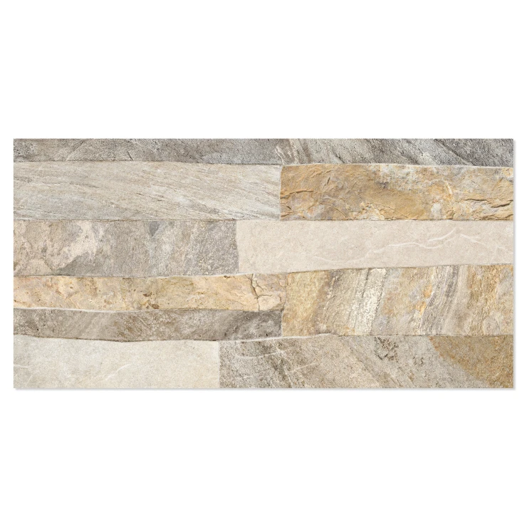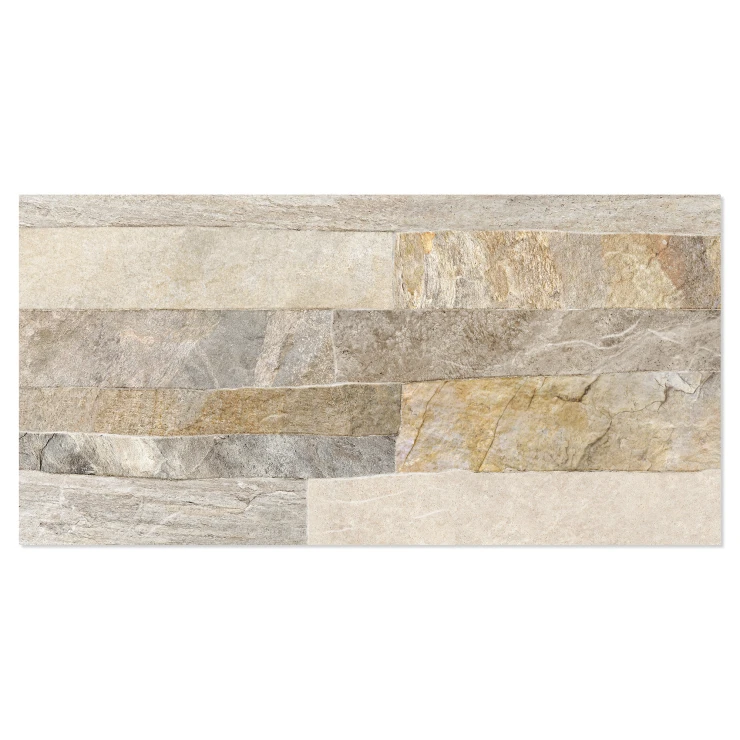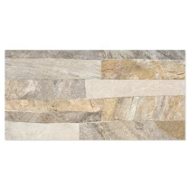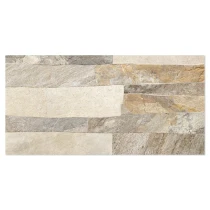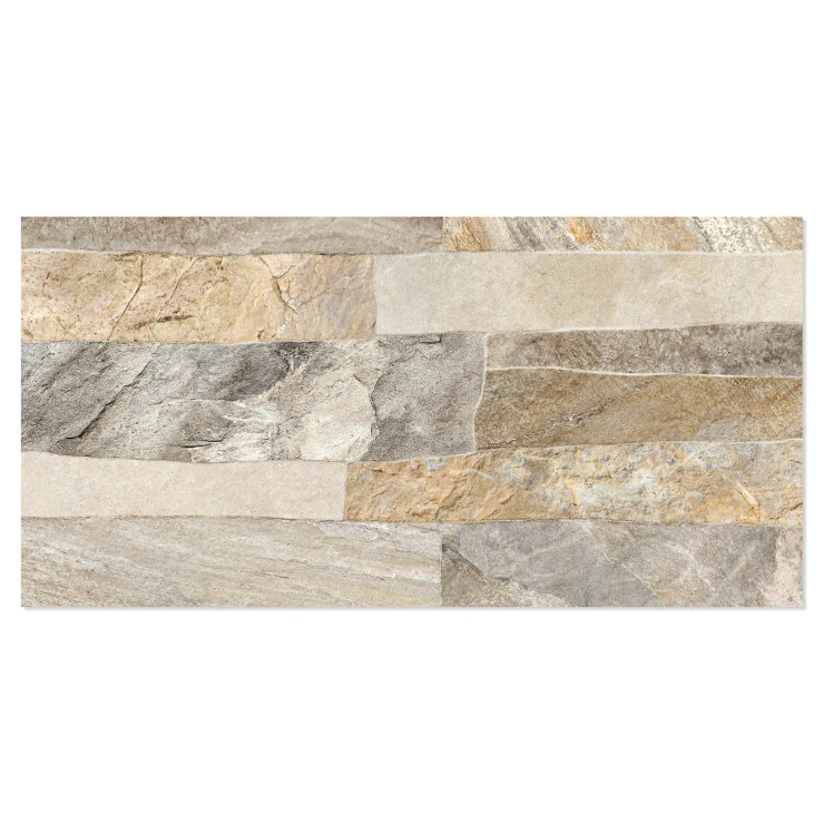 Rustica er en dekorativ flisekollektion i formatet 25x50 cm, der efterligner naturlig sten med en tydelig, taktil struktur. De uregelmæssige, lagdelte overflader skaber et autentisk og levende udtryk, der giver væggen dybde, variation og en robust, naturlig karakter.