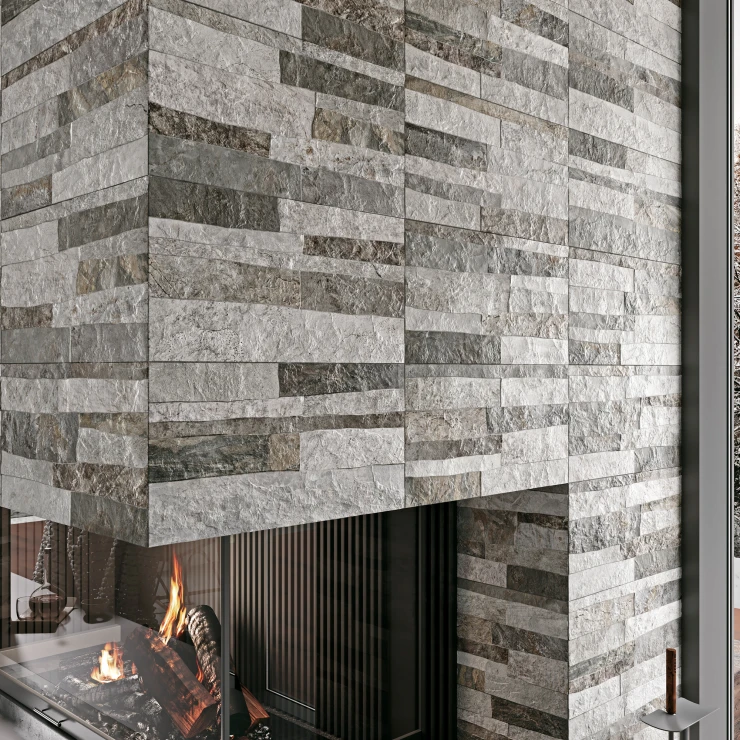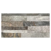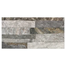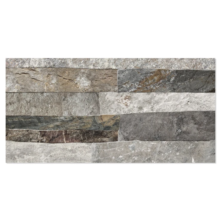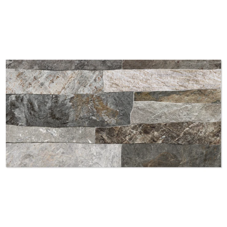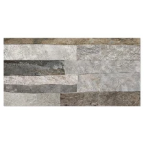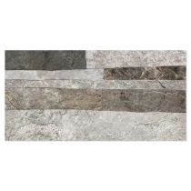 Rustica er en dekorativ flisekollektion i formatet 25x50 cm, der efterligner naturlig sten med en tydelig, taktil struktur. De uregelmæssige, lagdelte overflader skaber et autentisk og levende udtryk, der giver væggen dybde, variation og en robust, naturlig karakter.