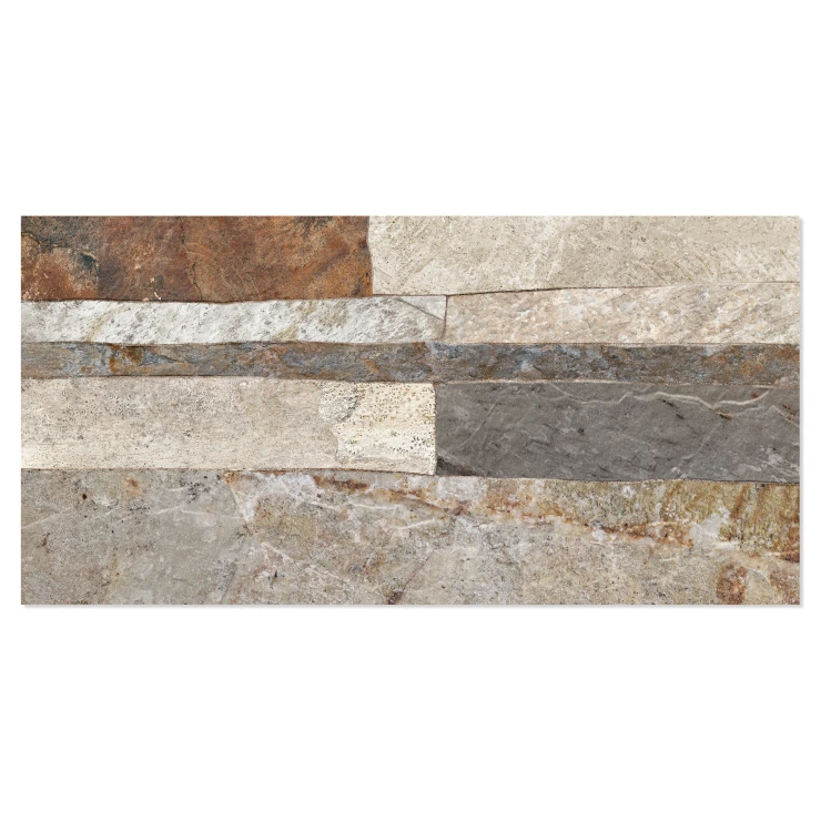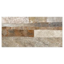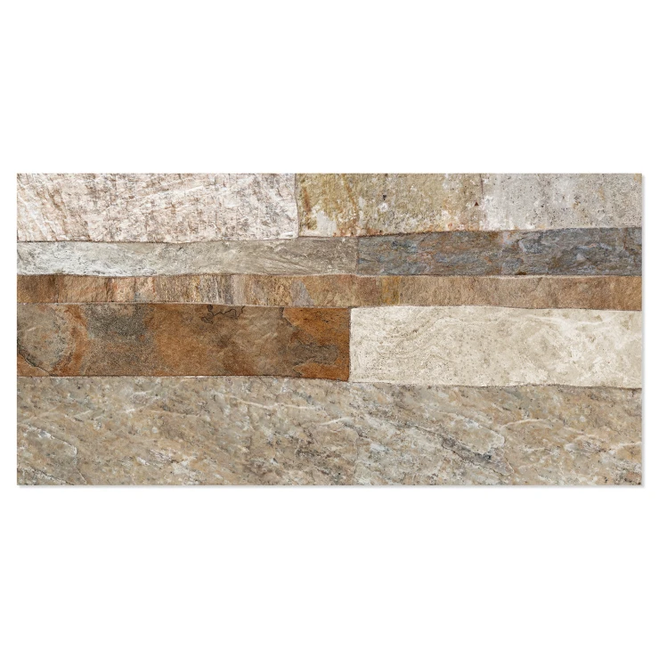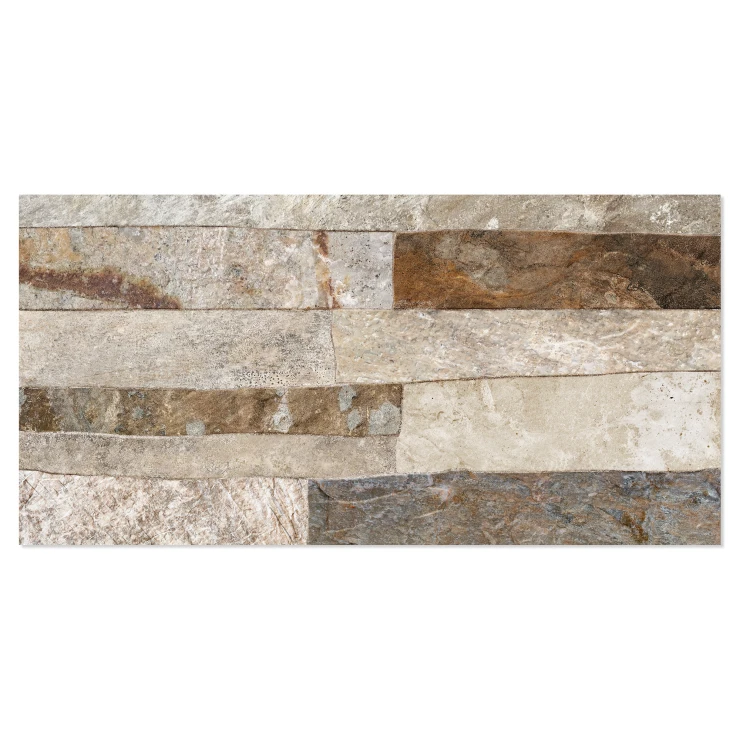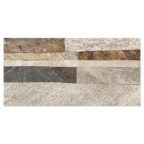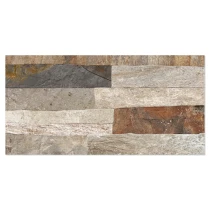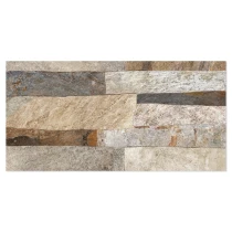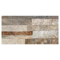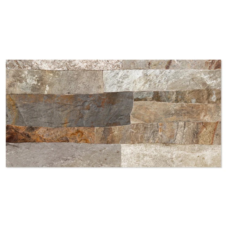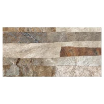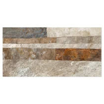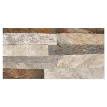 Rustica er en dekorativ flisekollektion i formatet 25x50 cm, der efterligner naturlig sten med en tydelig, taktil struktur. De uregelmæssige, lagdelte overflader skaber et autentisk og levende udtryk, der giver væggen dybde, variation og en robust, naturlig karakter.